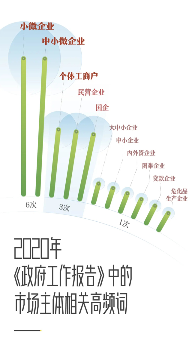 在今年的報告中,跟市場主體相關的詞里,“小微企業”提及次數最多,總計12次。其中6次為單獨提及,還有6次是列入“中小微企業”一詞中。足以證明對“小微企業”這一就業主要“容納器”的重視。
