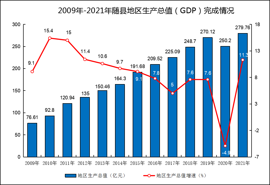 2009年-2021年隨縣地區生產總值(GDP)完成情況