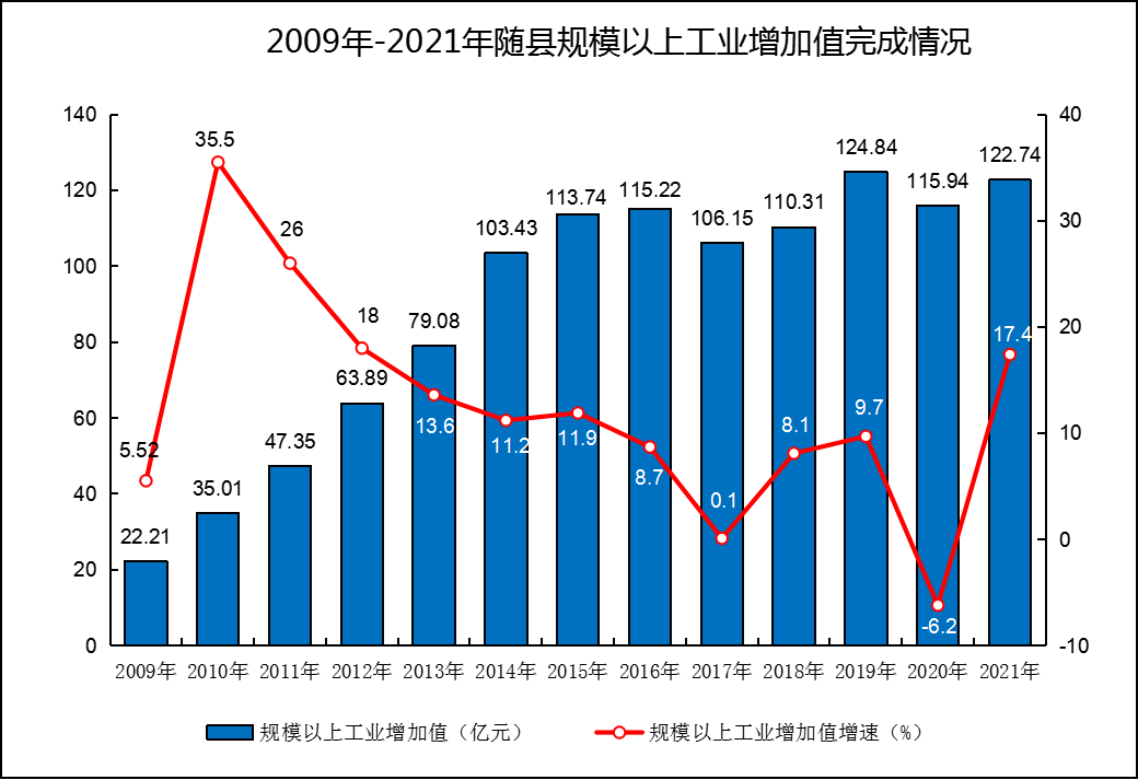 2009年-2021年隨縣規模以上工業增加值完成情況