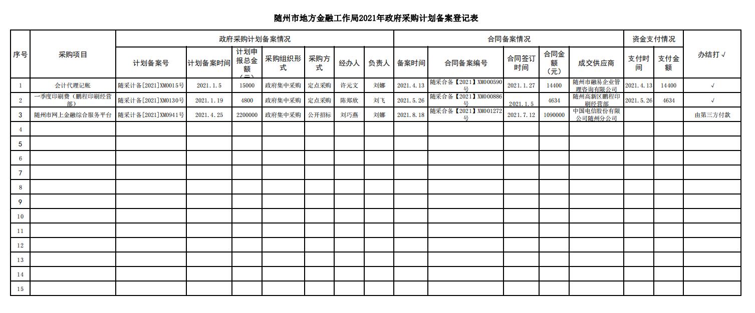 隨州市地方金融工作局2021年政府采購(gòu)計(jì)劃備案登記表