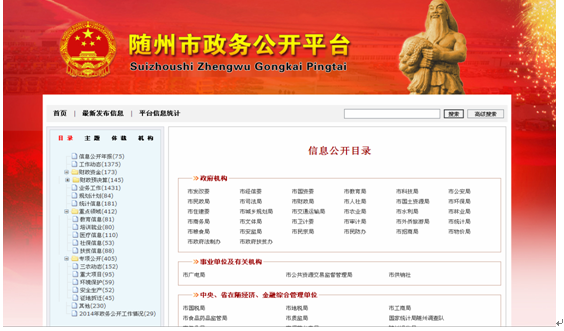 1、隨州市政府門戶網站。2015年,市政府門戶網站全年主動公開政府信息13113條,政府文件63個。