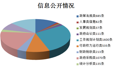 2017年,市政府及40個市直部門、17個鎮(zhèn)辦積極主動公開信息9047條。其中政策法規(guī)類685條,人事類信息82條,發(fā)展規(guī)劃類信息37條,政府會議111條,工作規(guī)劃計劃類1600條,行政權(quán)力運行類535條,財政稅收信息類213條,政府采購類信息1070條,統(tǒng)計分析類信息135條,公共服務(wù)類信息449條,政府重點工作類信息763條。