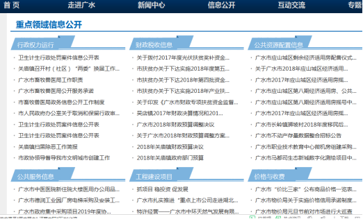 一是加強重點領域信息公開。根據政府工作職責,重點公開了行政權力、財政資金、公共資源配置、公共服務信息、工程建設項目、環境保護、食品藥品安全、安全生產、價格及收費等9大重點領域信息。2018年,共在廣水政府網公開重點領域信息1461條。推進公共資源配置信息公開。市住建局、市國土資源局、市公共資源交易監管局針對保障性住房、房屋征收、土地供應、土地征用、公共資源交易等信息及時在政府部門網站上公開相關政策及基本信息,共公開信息343條。推進重大項目建設信息公開。市發改局及時公開市本級投資項目立項、核準、備案等批復情況,市交通運輸局及時公開交通領域項目推進建設情況,市水利局及時公開水利項目推進落實情況。推進公共服務領域信息公開。市民政局及時公開城鄉低保、特困供養、臨時救助、醫療救助信息,市物價局及時公開行政事業性收費、價格監測等相關信息,市環保局及時公開空氣和水環境質量、建設項目環評及驗收、污染源監管等相關領域信息。共公開信息616條。