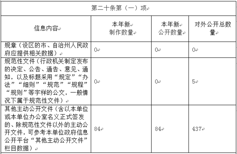 二、行政機關主動公開政府信息情況