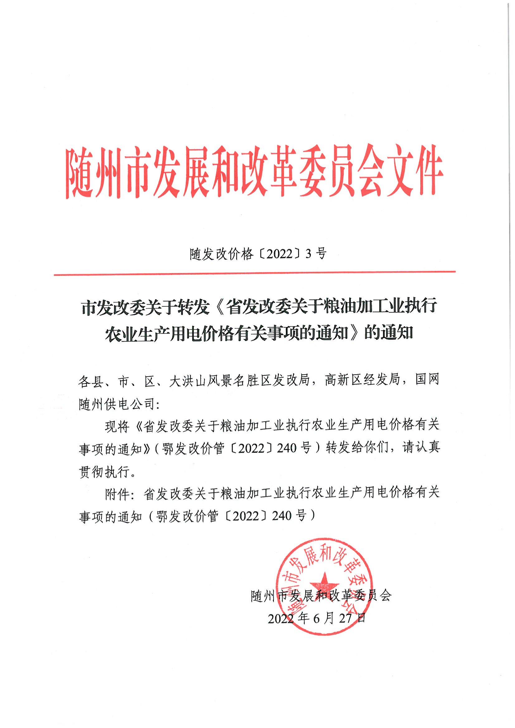 市發(fā)改委關(guān)于轉(zhuǎn)發(fā)《省發(fā)改委關(guān)于糧油加工業(yè)執(zhí)行農(nóng)業(yè)生產(chǎn)用電價格有關(guān)事項的通知》的通知