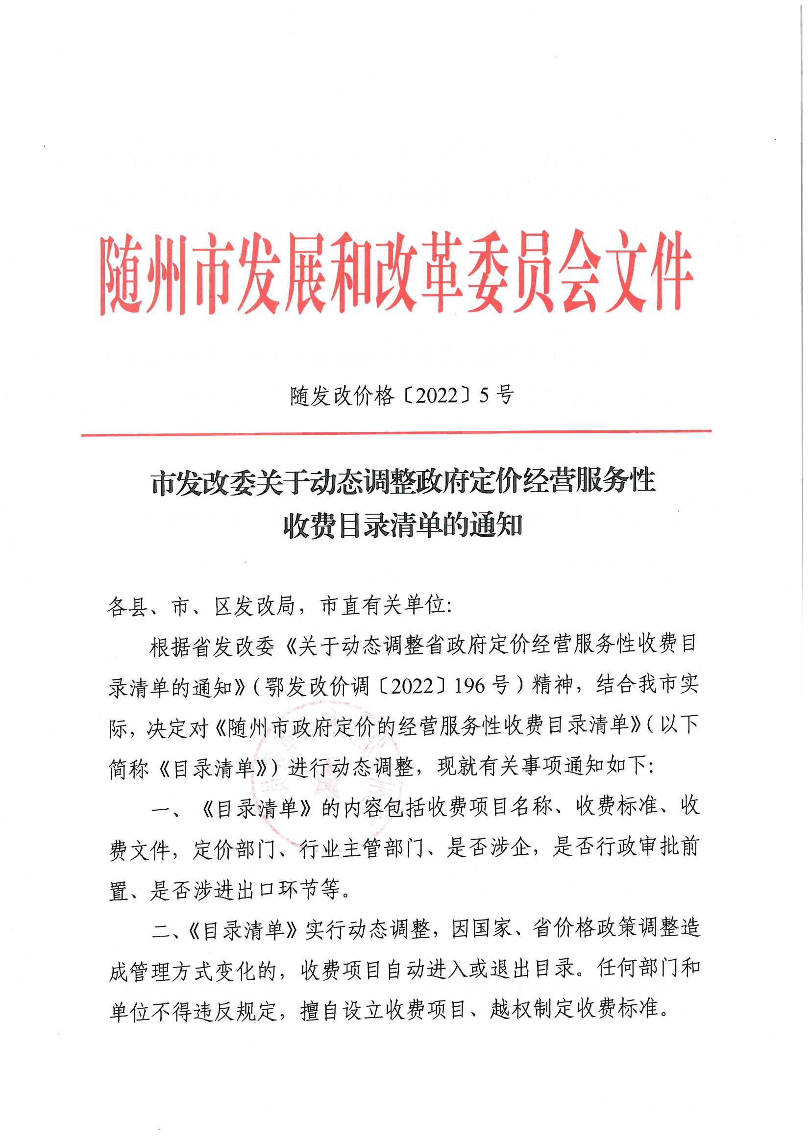市發改委關于動態調整政府定價經營服務性收費目錄清單的通知