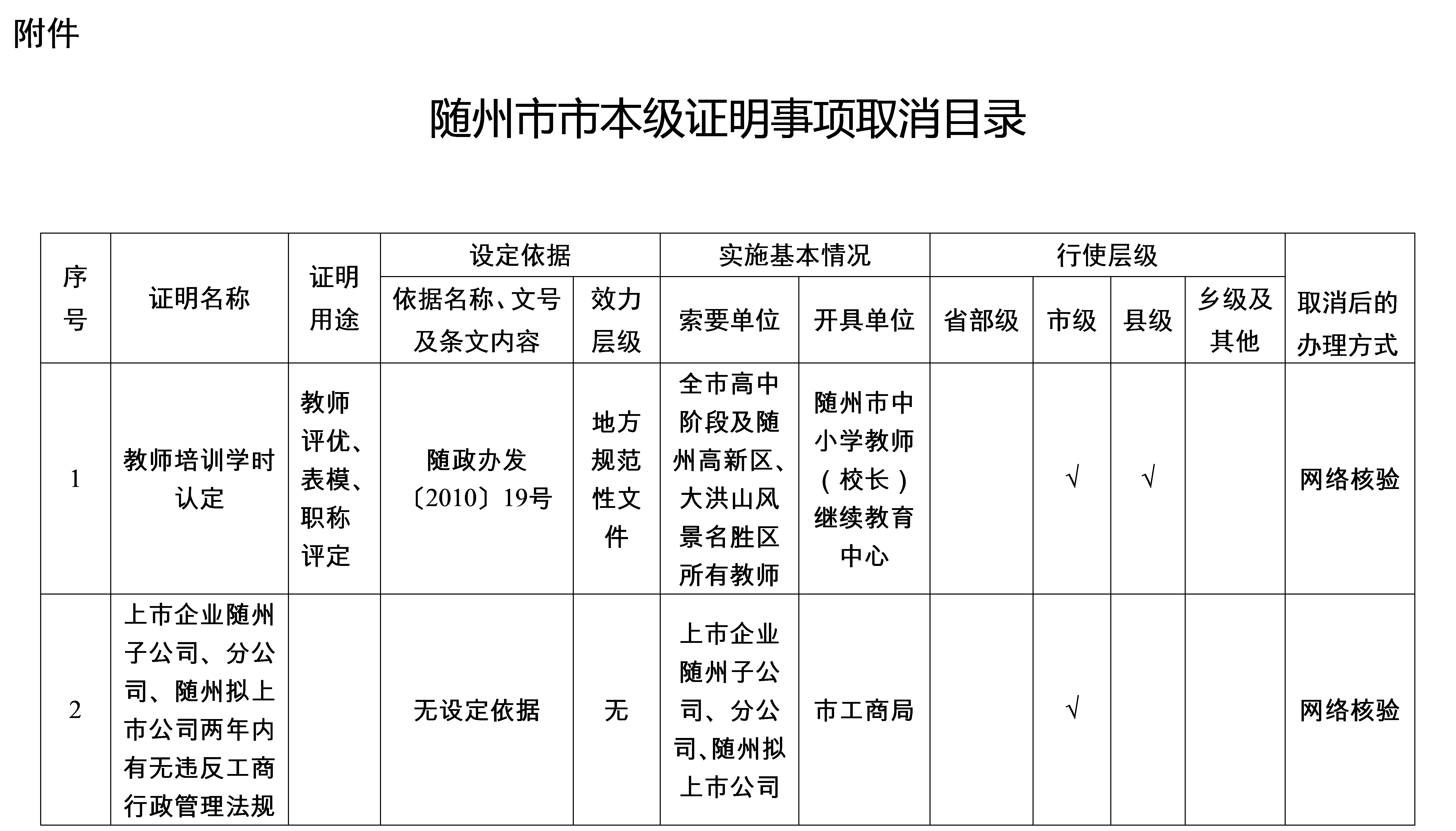附件:隨州市市本級證明事項取消目錄
