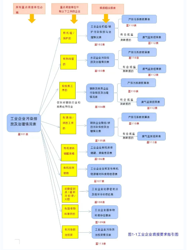 所有統計調查的工業企業均需填報工業企業污染物和溫室氣體排放及治理情況表(基101表)。