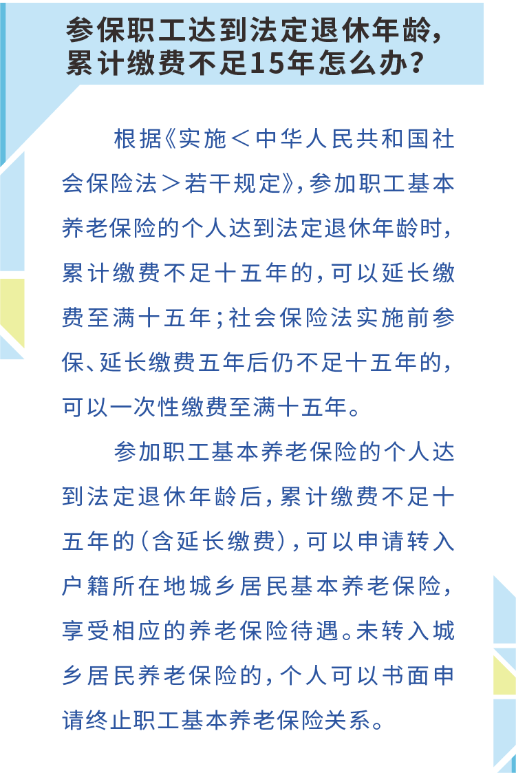 圖解:參保職工達到法定退休年齡,累計繳費不足15年怎么辦?